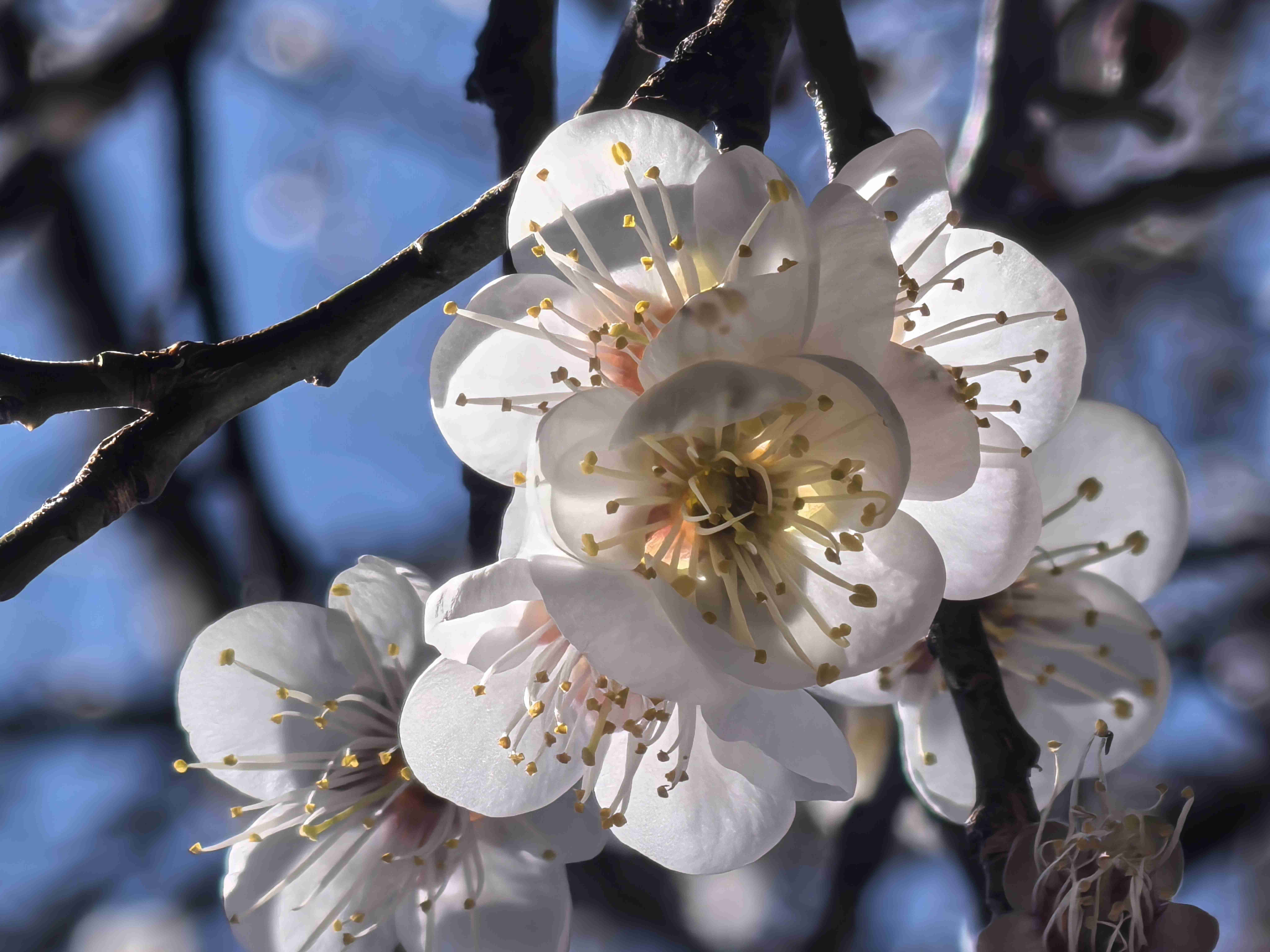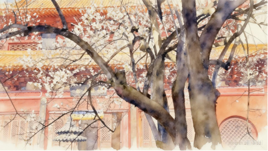 这一日我在古梅树下不断地按下快门拍摄如飞雪般梦幻的梅花,心里却是挥之不去的别情。