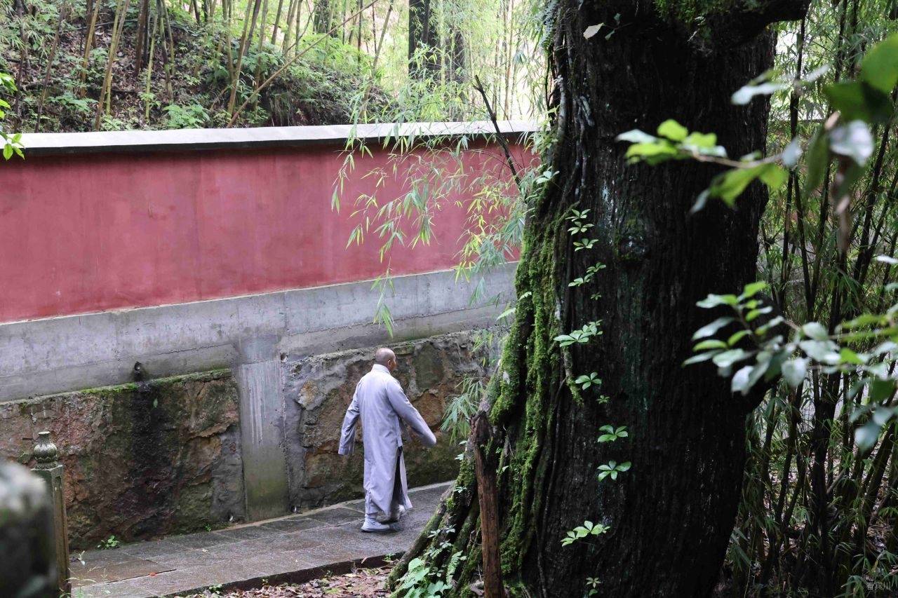 更早一次是2023年8月9日,云南省徐霞客研究会和浙江省徐霞客研究会在鸡足山有个研讨交流活动,国内一众徐学大咖学者在虚云寺这棵古梅树下访问惟升师。丽江学者夫巴问及遍舟师墓塔离寺远不远,惟升师说越南离云南也不远,言语风趣。当我们一行离开虚云寺前往碧云寺时,惟升师一直送大家直到虚云寺背后的灵润桥,古树下老桥上师孑然独立合掌相送大家,彼时我突然想起鸡足山“三笑桥”的故事。高奣映《鸡足山志》载“在白云居内,秋月池上,还源禅师隐于此者二十年,送客不过桥。一日,大错和尚同野藏来访。还源不觉送过是桥,眼藏云‘远公乃过虎溪耶?’三人大笑而别,桥遂以此得名焉”。还源禅师即是崇祯庚辰进士曾高捷,宾川罗官营人,其与儿、孙成就列入云南科举世家。触景生情,觉得别致,挥手相别。但至今惟升师孑然立于桥头送别的画面却一直深深印在记忆里,岁月不能剥蚀。那一日,虚云寺中的梅树梅叶青青,无痕无迹地装点着岁月,轻如山中烟雨,又似乎缥缈如寺院檐角的风铃声,在有无之间。