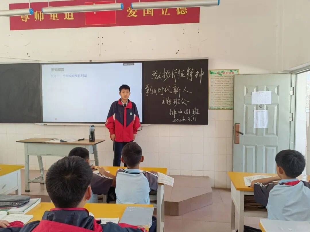 3月11日,宾川县大营镇排营初级中学开展“弘扬长征精神 争做时代新人”主题班会活动。活动通过诵读、讲述、交流等多元形式,让学生在重温红色记忆中感悟长征精神,厚植家国情怀。