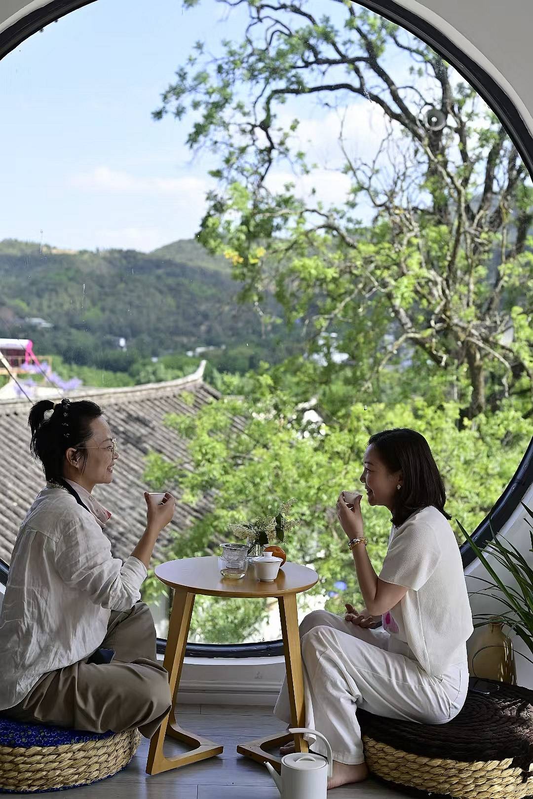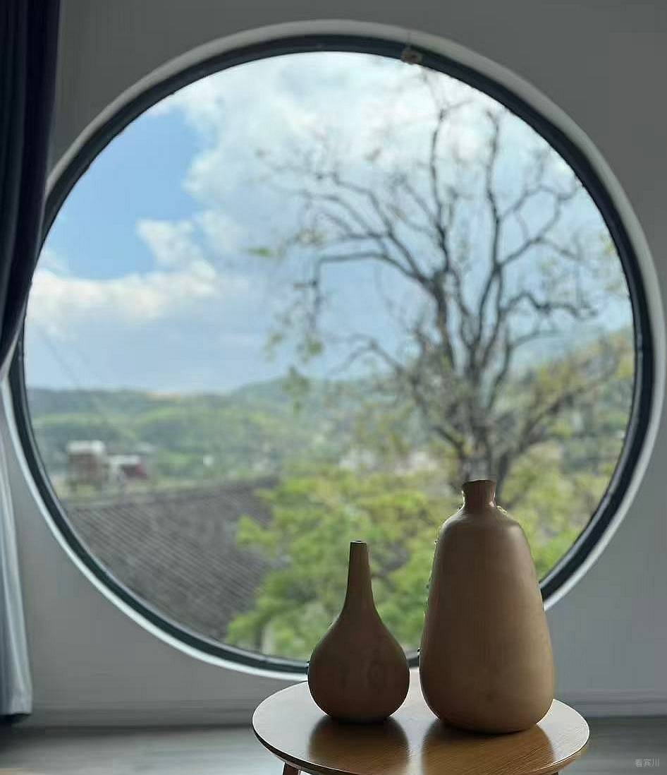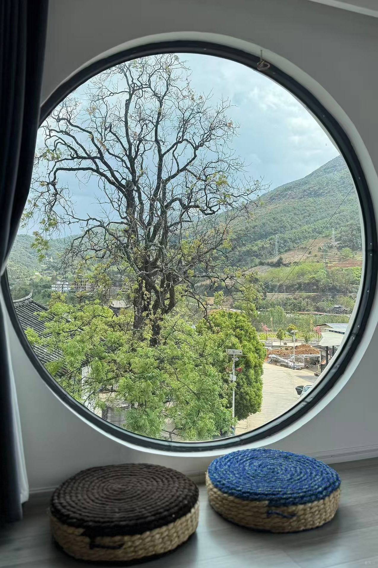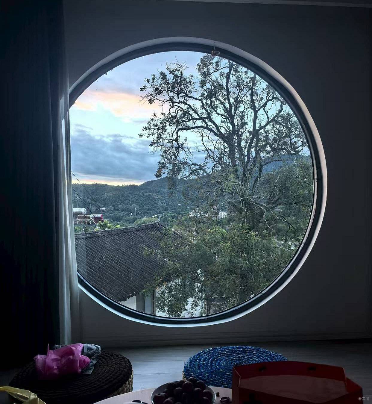 最让我觉得暖心的,是古树身上藏着的人间烟火气。苍劲有力的枝桠上,架着几只广播,没有丝毫违和,反倒格外接地气。村里的大小通知、劳作讯息,都从这古树的枝间传来,没有现代通讯的疏离,满是邻里间的亲近与温暖。这份质朴的美好,消解了现代人依赖手机、电话沟通的隔阂,每每听到广播声从树间悠悠响起,心中便满是欢喜,觉得这是独属于村庄的幸福,简单又珍贵。为了日日与古树相伴,我特意做了三个大圆窗,从此,临窗守望古树的四季,成了我生活里最温柔的仪式。