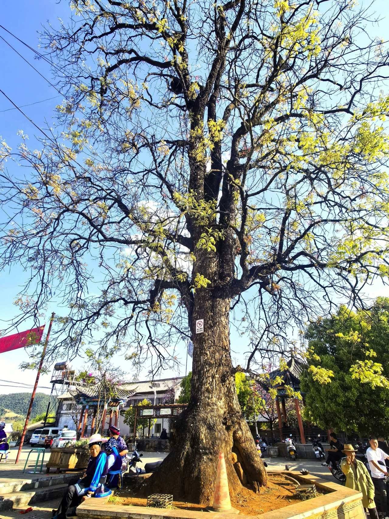 初见鸡足山镇沙址古村文昌宫旁的那两棵古树时,心底便涌起一股难以言说的欢喜,没有缘由,却又根深蒂固,后来细细回想,这份偏爱是来自儿时老家小河边的老椿树群,潺潺的小河,水丰草肥,岸边的老椿树亭亭而立,那是我整个童年的归宿。闲暇时,总爱捧着书本坐在树下,躺在草地上,翘起脚丫,看地上忙碌的蚂蚁分了神,时而抬头,看河边牛羊悠闲啃食青草,朗朗的读书声伴着流水声,漫过整个年少时光。那些在大树下的欢声笑语,那些与草木相伴的慵懒岁月,成了心底最温柔的念想。而这两棵古树,竟让我瞬间梦回童年,仿佛又回到了那片绿荫之下,寻回了遗失许久的纯真与安宁。这一份纯真早已刻进童年的乡愁里。