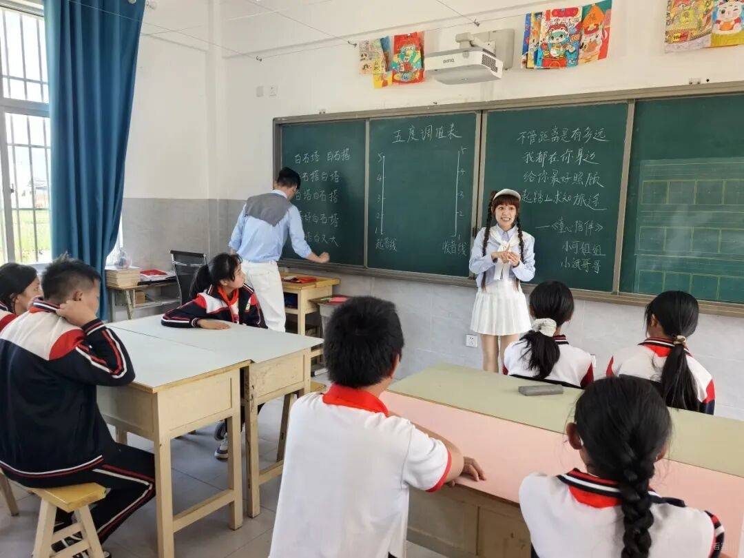 捐赠仪式后,一场别开生面的音乐互动课堂正式开课。志愿者老师围绕科学发声、朗读技巧、正确歌唱展开细致教学,从呼吸方式、发声位置到节奏把控,一步步示范、一点点纠正,耐心区分普通哼唱与专业歌唱的区别,让孩子们第一次系统了解科学用嗓、用情歌唱的方法。