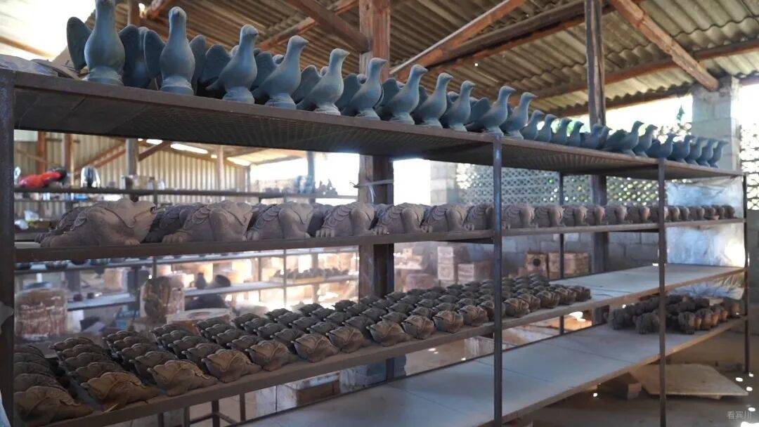 青砖黛瓦承古韵,匠心造物润滇西。在宾川金牛镇,康氏灰陶的窑火已燃了五十余年。如今,这家企业不仅用百余种古建砖瓦撑起滇西的庙宇楼台、古镇新居,更将泥土与火焰的艺术揉进了茶杯、摆件之中。从屋脊到茶席,从建筑材料到旅游伴手礼,品类之全,已不止于“筑”力古建,更在“润”泽生活。