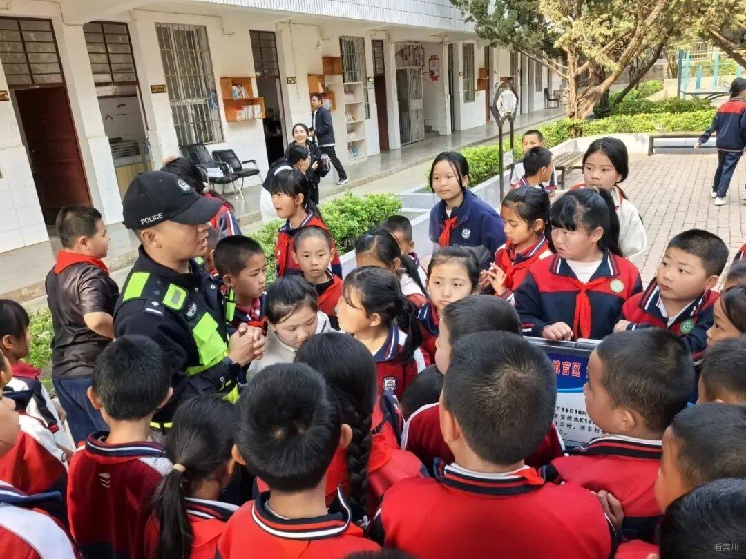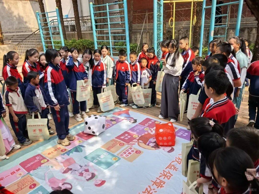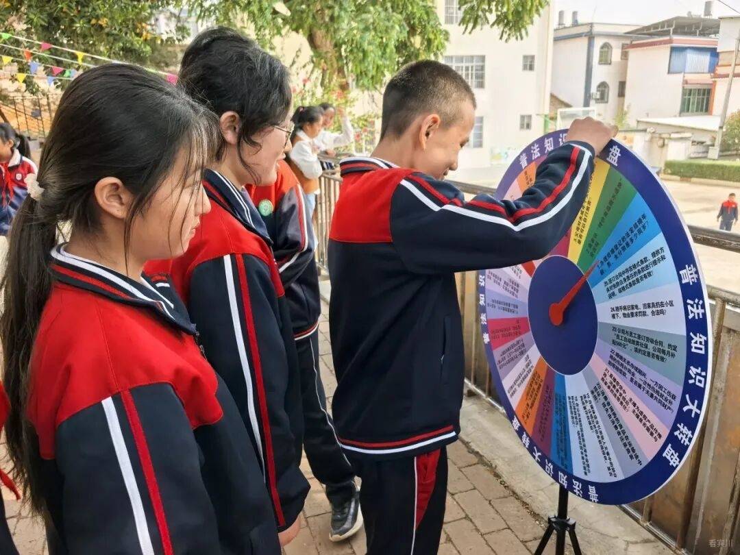 普法宣传互动区内,鸡足山派出所、司法所、宾川县委统战部、县民宗局等单位工作人员现场设立咨询台,摆放宣传展板、发放宣传手册,开展多元宣传宣讲。工作人员一边引导学生观看展板内容,一边结合真实案例,细致讲解交通安全、国家安全等知识,用通俗易懂的语言把安全常识、法治理念送到孩子们身边;宾川县委统战部、县民宗局工作人员则立足民族团结主题,耐心讲解民族知识、民族政策与民族团结进步理念,引导孩子们树立民族团结意识,厚植家国情怀,营造各民族守望相助、团结友爱的良好氛围。