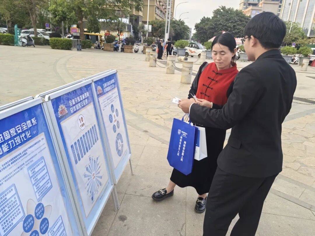 统筹各级各部门宣传力量,增强国家安全教育的渗透力和感染力。4月15日,联合公安、政法、宣传、司法等多部门,在县城越析广场设立集中宣传点,摆放国家安全知识、典型案例展板。工作人员化身普法宣传员,通过发放宣传手册、现场答疑解惑、以案释法讲解等方式向群众普及国家安全知识、公民维护国家安全的义务、举报危害国家安全行为的途径(12339)等知识,切实营造国家安全人人有责、人人尽责的浓厚社会氛围。