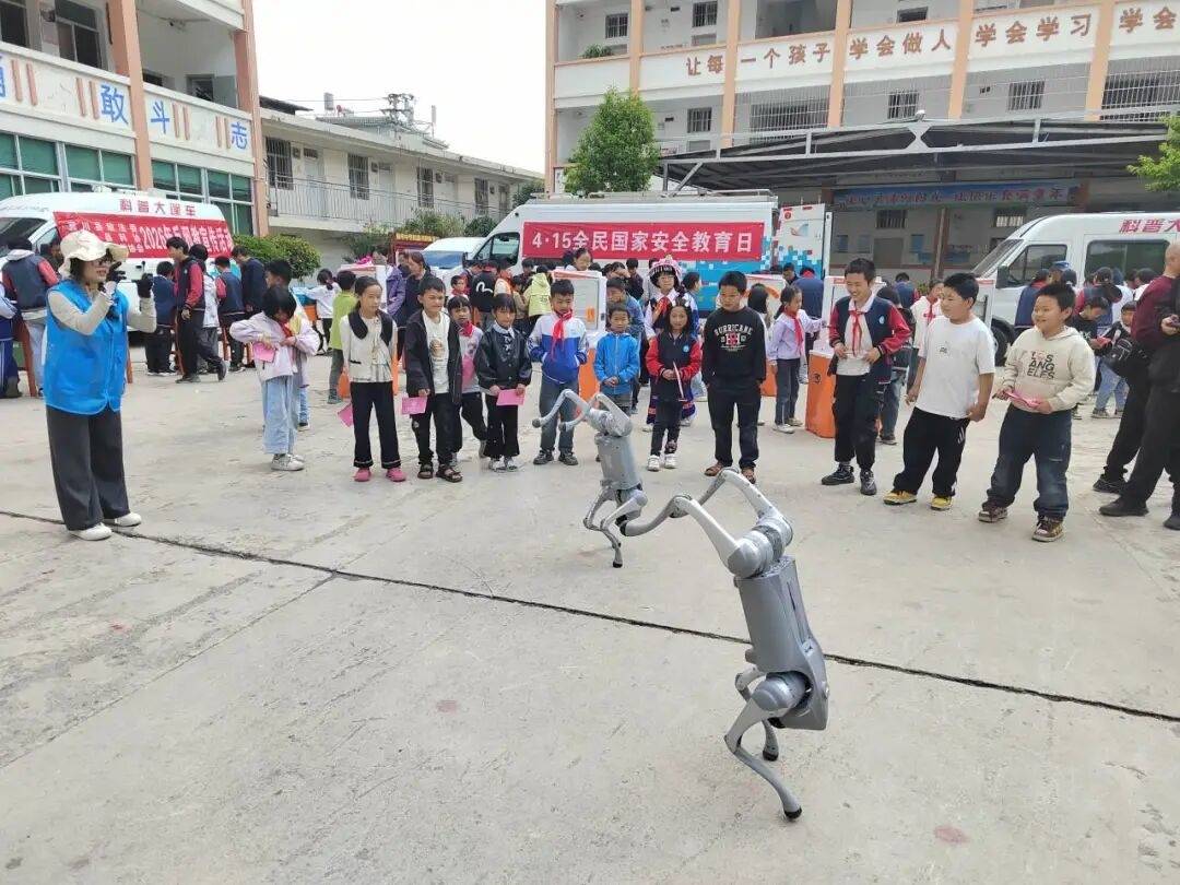 活动现场,8辆科普大篷车一字排开,瞬间成为当地一道亮眼的风景线,吸引了大批师生、群众踊跃参与。现场设置力学光学互动、电磁科学探秘、VR科技体验、机器人和机器狗表演、人工智能展示、生命健康科普、国家安全教育、农业技术推广等多个特色体验专区,近百件趣味科普展品悉数亮相。在互动体验区,孩子们围在各类展具前,亲手操作、仔细观察、踊跃提问,在科普志愿者的细致讲解下,直观感受物理科学、航天科技、自然科学的奇妙之处,沉浸式体验科学乐趣,点燃探索创新的热情。