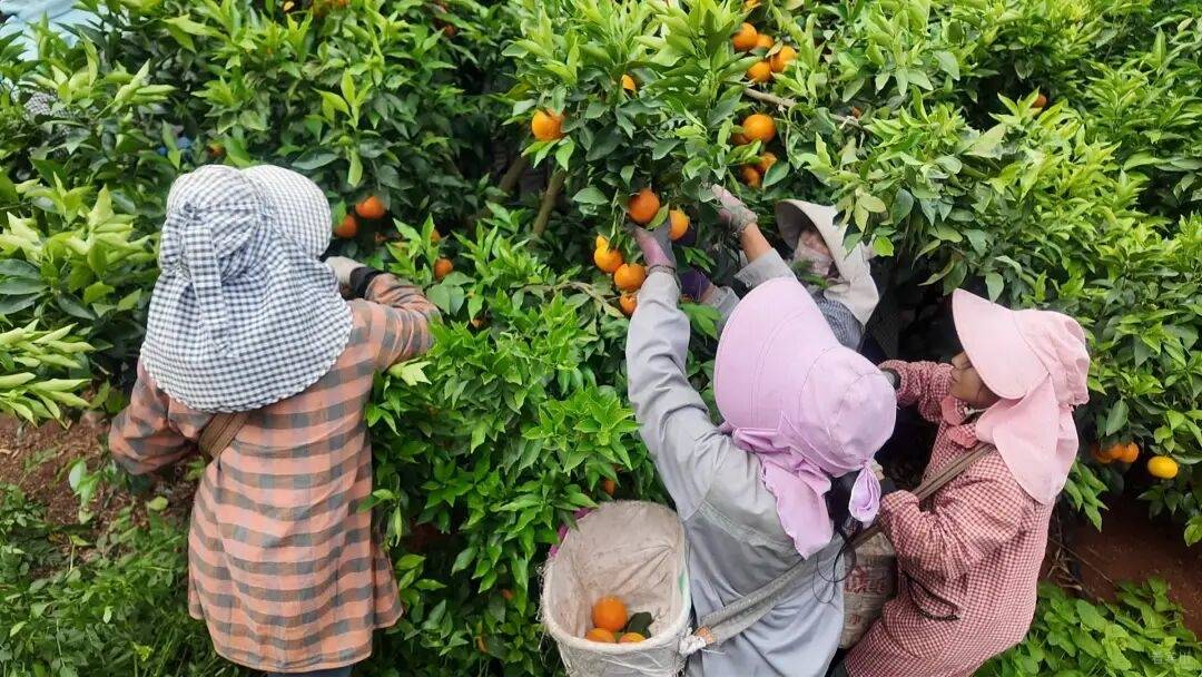 春日宾川,沃柑飘香。全县8.7万余亩沃柑迎来丰收盛期,金黄饱满的果实缀满枝头,甜润果香漫山遍野。一支支专业采果队穿梭果园,指尖轻剪、果篓满盈,摘下的是鲜甜沃柑,记进的是一本本沉甸甸的甜蜜增收账。如今,来自宾川及祥云、南涧、云龙等周边县份的近2000名采果队员,在家门口就近就业、稳定增收,用勤劳双手把日子过得越来越甜。