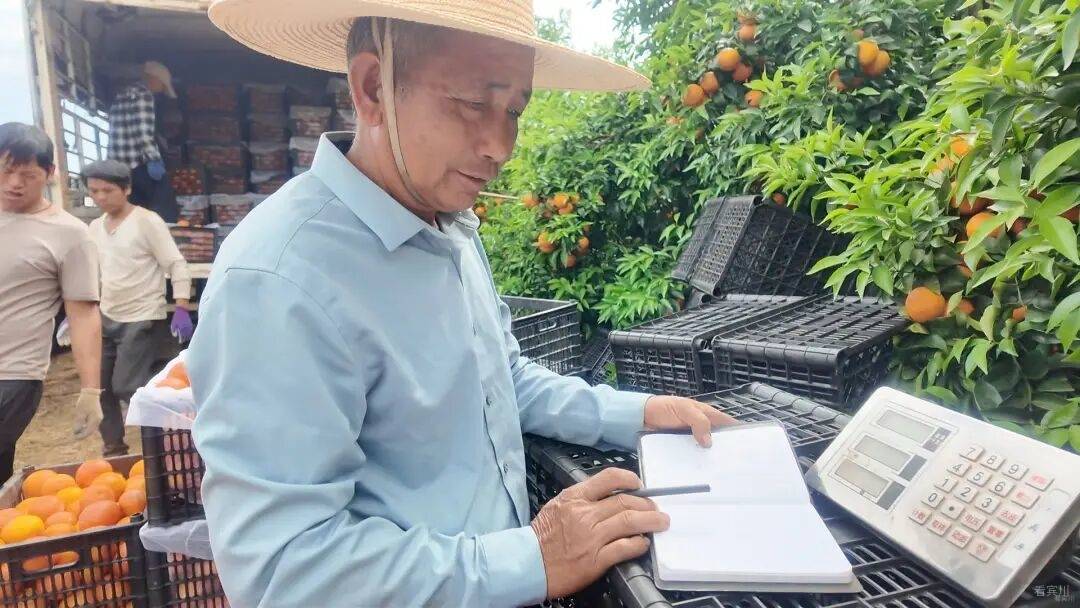 白连天家的百亩果园,只是宾川沃柑丰收的一个缩影。就在他的果园旁,来自浙江的收购商毛必武正忙着调度装车。他盯着果筐上车,并通过电话不停地沟通发货安排。